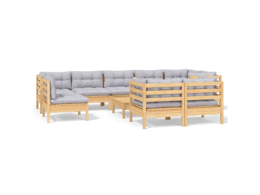10dílná zahradní sedací souprava šedé podušky masivní borovice 3096531