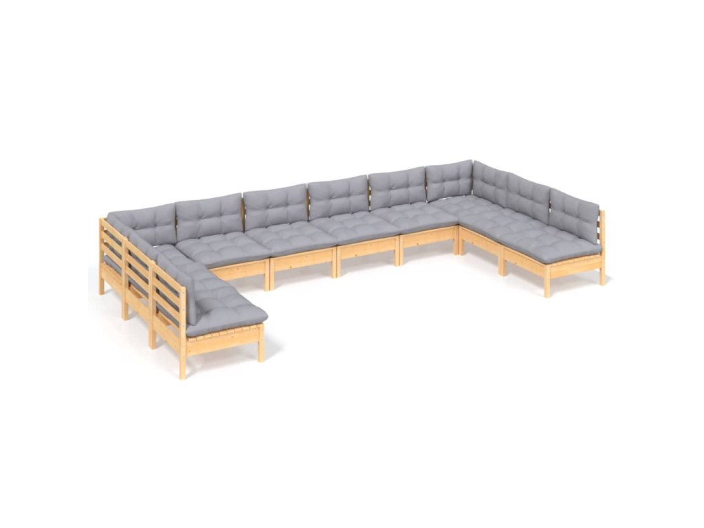10dílná zahradní sedací souprava šedé podušky masivní borovice 3097186