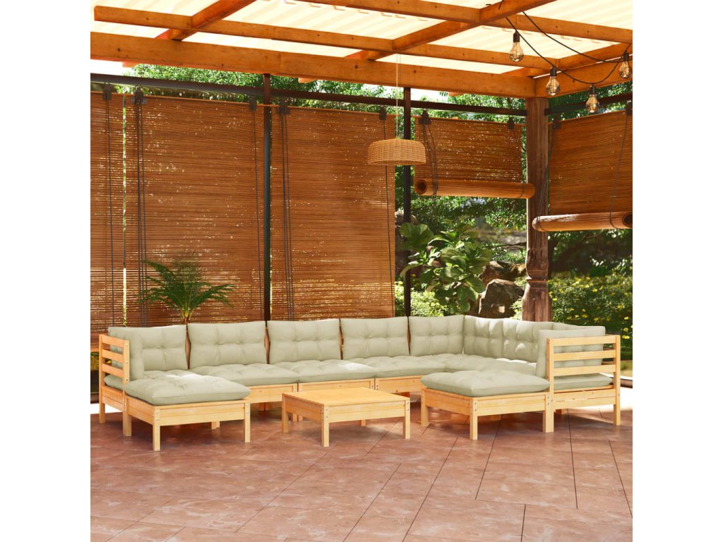10dílná zahradní souprava krémové podušky masivní borovice 3096713