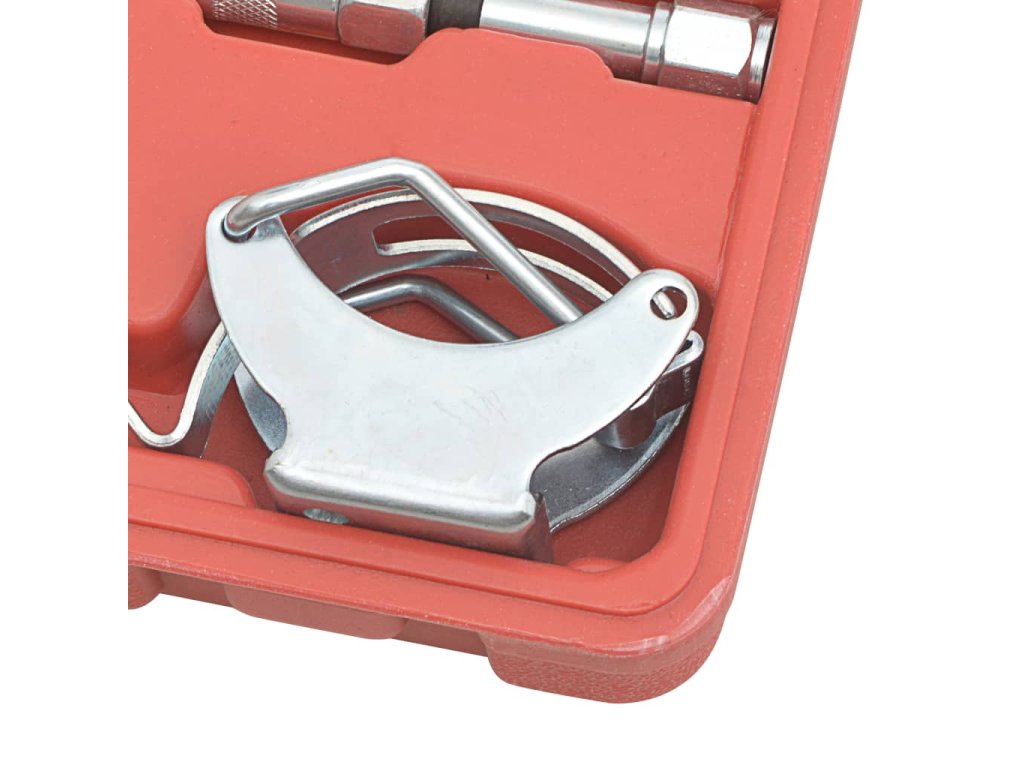 Toto autonářadí je vyrobené z vysoce odolného železa s důrazem na dlouhou provozní životnost. Prodlužovací hadice poskytuje flexibilitu nástrojům s pevným prodloužením. Jehlová tryska umožňuje obsluze dosáhnout do proplachovacího nebo do těžko přístupného hydraulického typu armatur. Všechny položky jsou zabaleny v pouzdře z foukaného plastu pro snadné skladování a přepravu.