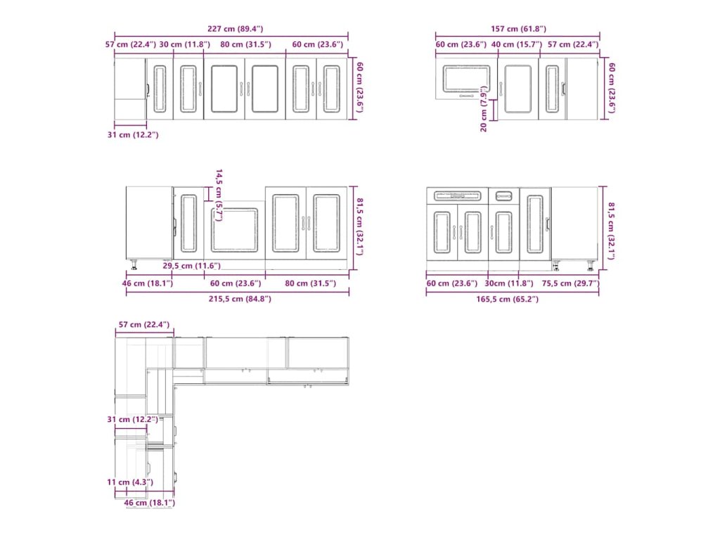 - Dostatek úložného prostoru: Sada kuchyňských skříněk má mnoho přihrádek a nabízí dostatek prostoru pro uložení misek, talířů, hrnců a dalších kuchyňských spotřebičů.