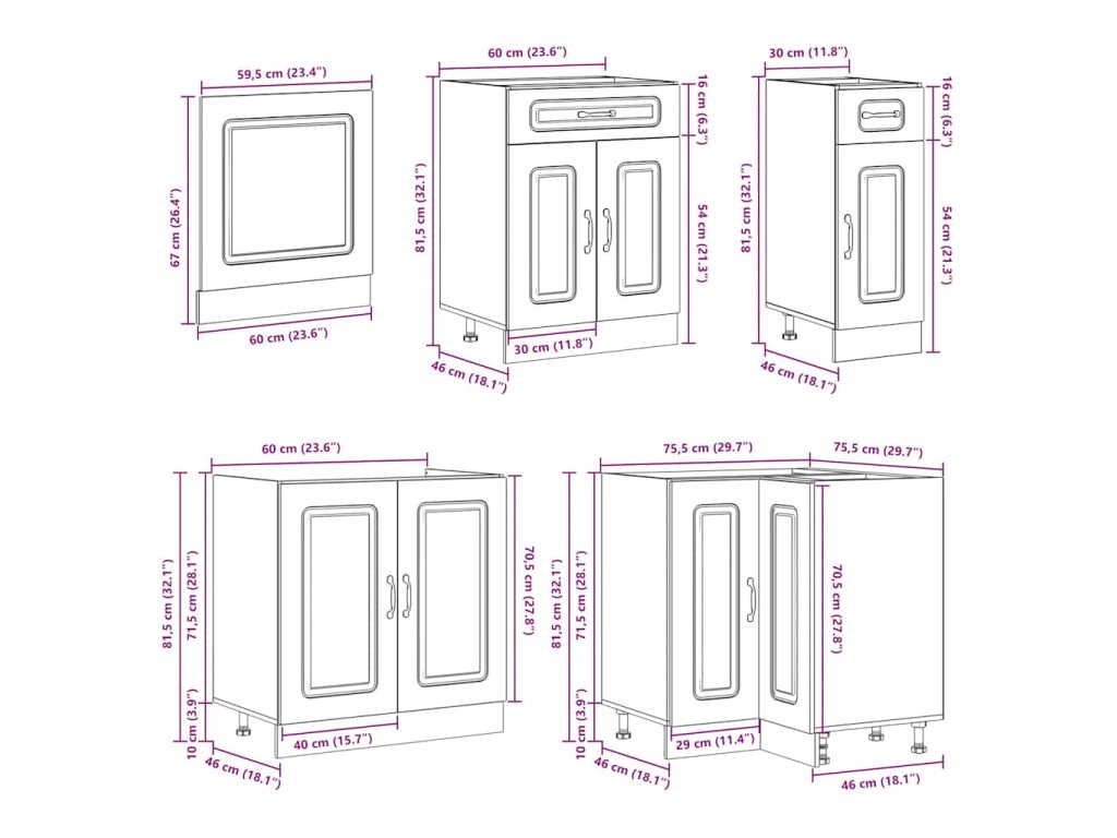- 1 x kuchyňská spodní skříňka: 60 x 46 x 81,5 cm (Š x H x V)