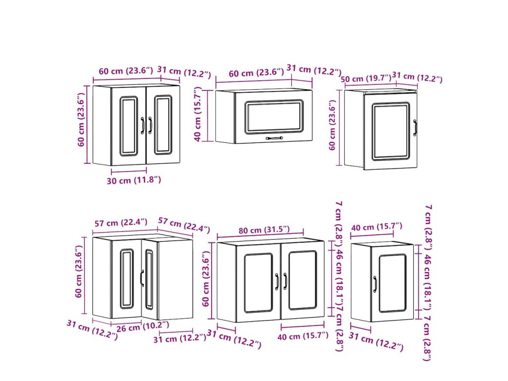 - 1 x kuchyňská nástěnná skříňka: 80 x 31 x 60 cm (Š x H x V)