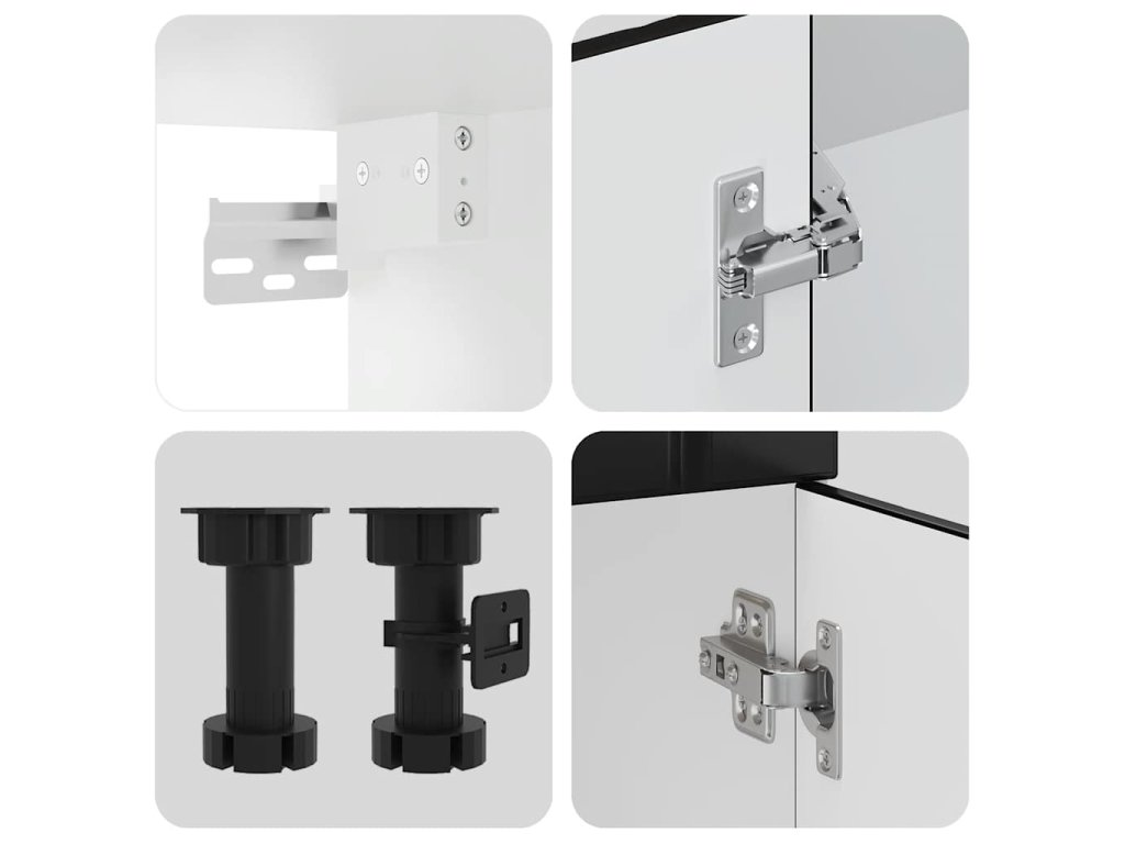 - Nastavitelné nožičky: Spodní skříňky jsou vybaveny nastavitelnými nožičkami, které lze výškově nastavit tak, aby vyhovovaly uspořádání vaší kuchyně.