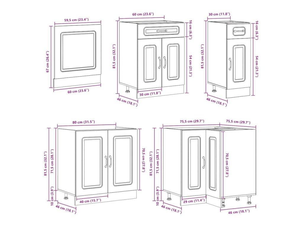- 1 x kuchyňská spodní skříňka: 80 x 46 x 81,5 cm (Š x H x V)