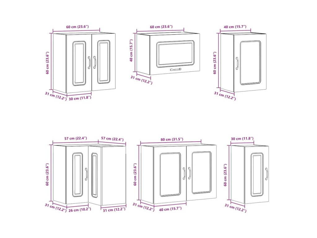 - 1 x kuchyňská nástěnná skříňka: 80 x 31 x 60 cm (Š x H x V)