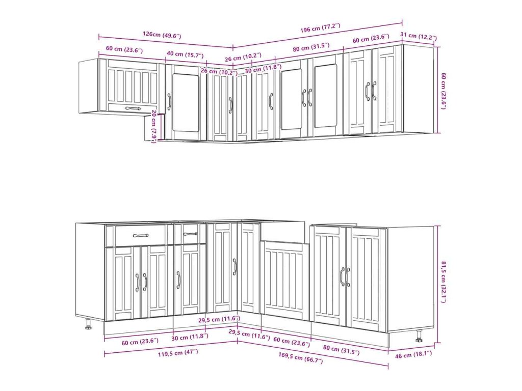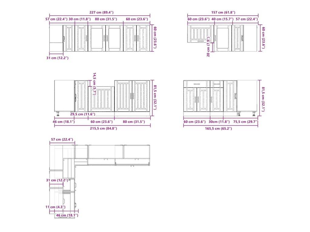 - Dostatek úložného prostoru: Sada kuchyňských skříněk má mnoho přihrádek a nabízí dostatek prostoru pro uložení misek, talířů, hrnců a dalších kuchyňských spotřebičů.