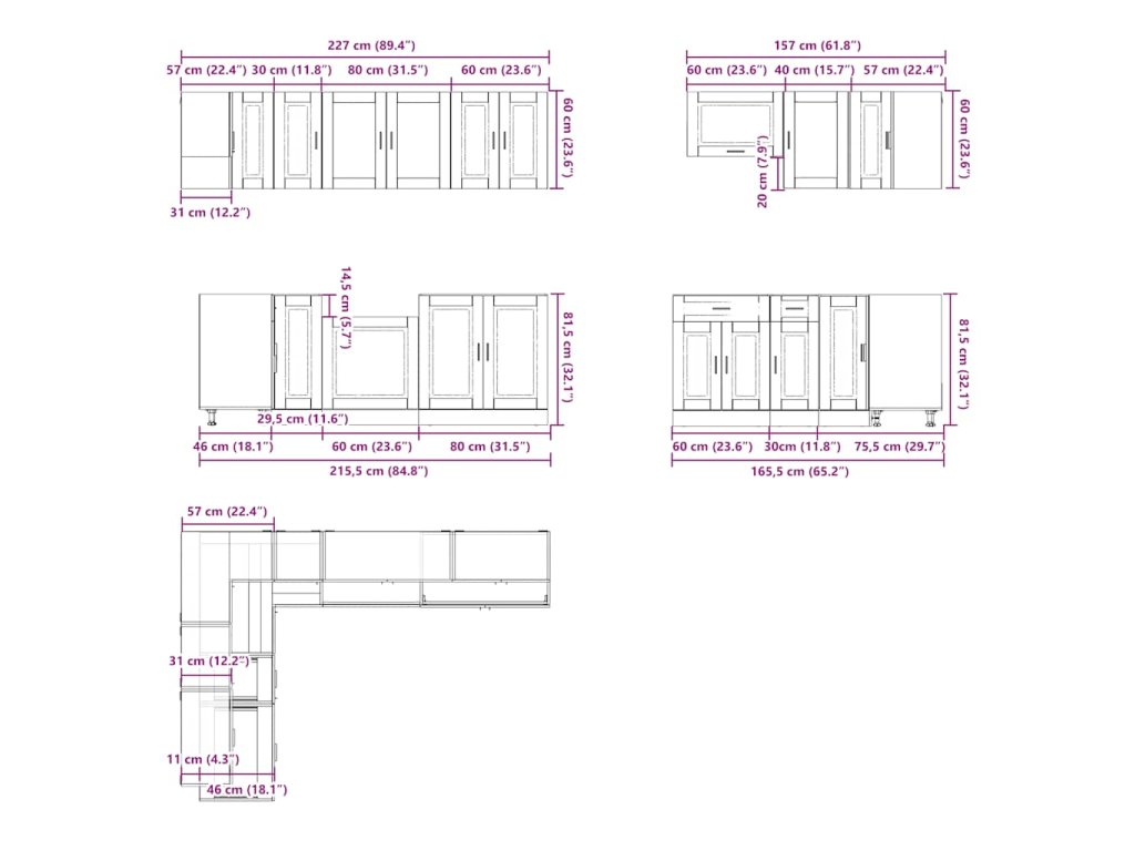 11dílná sada kuchyňských skříněk "Porto" bílé kompozit 3314901