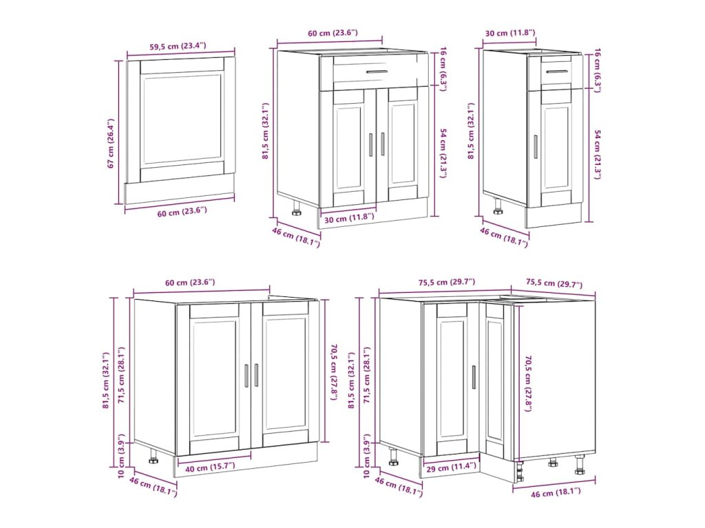 - 1 x kuchyňská rohová spodní skříňka: 75,5 x 75,5 x 81,5 cm (Š x H x V)