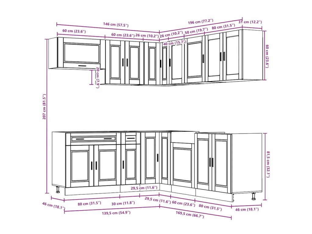 Tento 11dílný set kuchyňských skříněk s elegantním designem vám pomůže optimalizovat prostor v kuchyni a poskytne vám spoustu místa k uložení vašich osobních věcí!