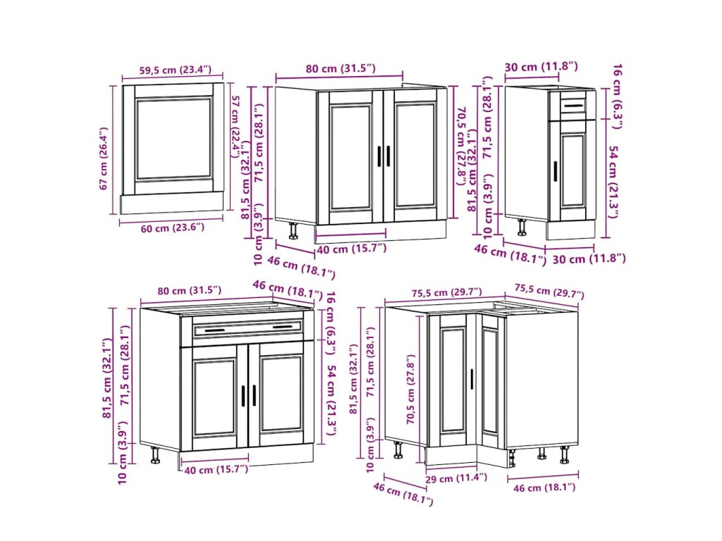 - 1 x kuchyňská spodní skříňka: 80 x 46 x 81,5 cm (Š x H x V)