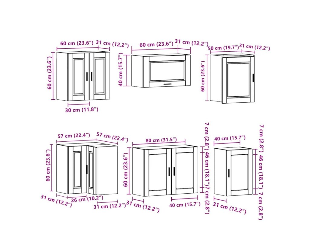 - 1 x kuchyňská nástěnná skříňka: 80 x 31 x 60 cm (Š x H x V)
