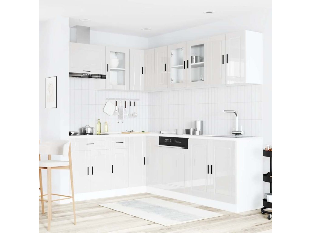 11dílná sada kuchyňských skříněk "Porto" bílé lesk kompozit 3314903