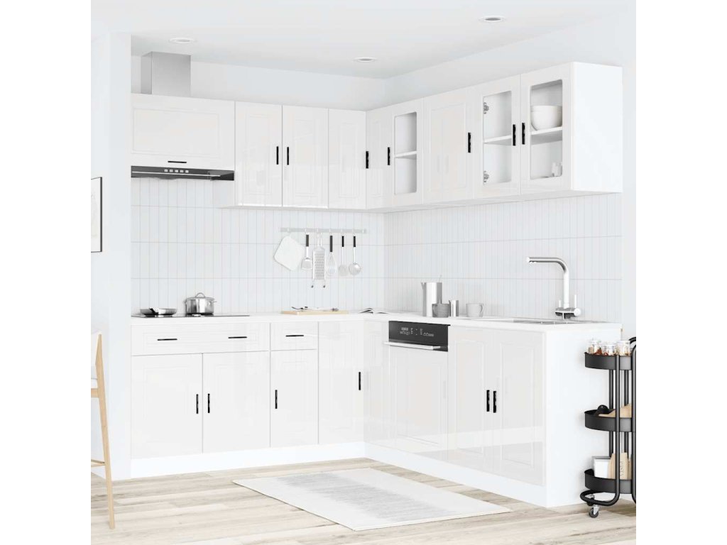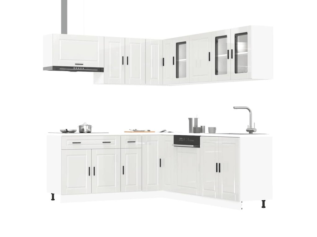 11dílná sada kuchyňských skříněk "Porto" bílé lesk kompozit 3314933