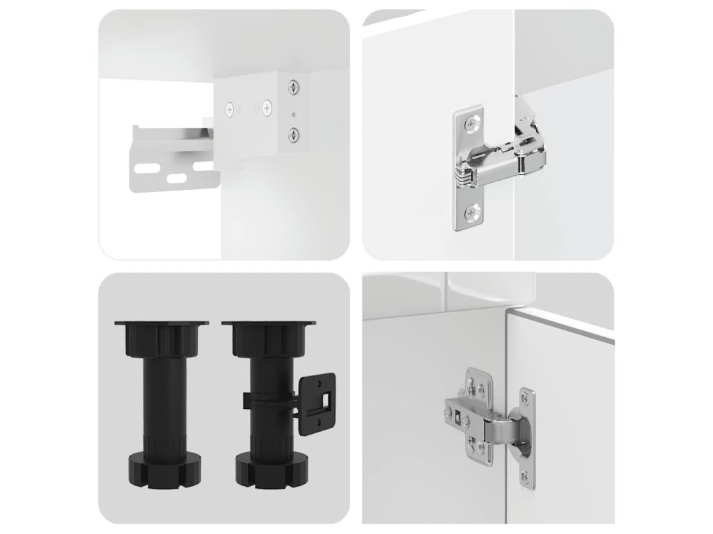 - Nastavitelné nožičky: Spodní skříňky jsou vybaveny nastavitelnými nožičkami, které lze výškově nastavit tak, aby vyhovovaly uspořádání vaší kuchyně.