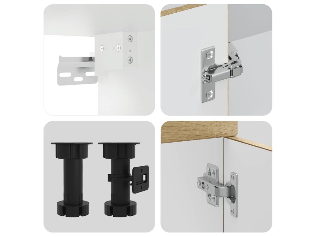 - Nastavitelné nožičky: Spodní skříňky jsou vybaveny nastavitelnými nožičkami, které lze výškově nastavit tak, aby vyhovovaly uspořádání vaší kuchyně.