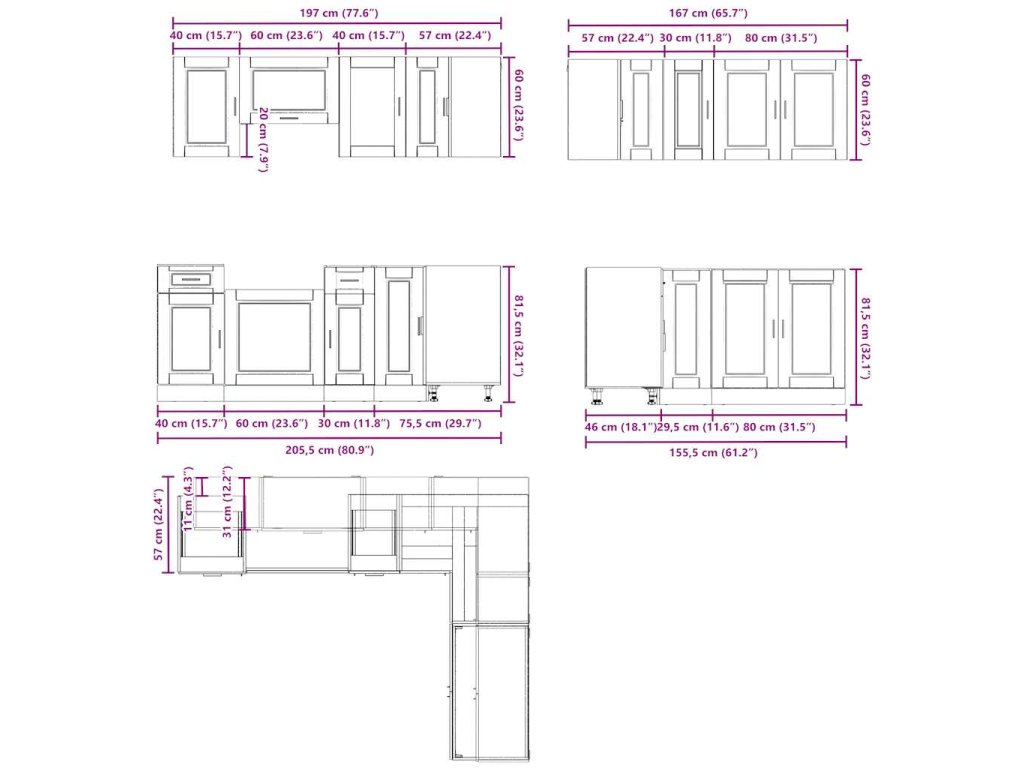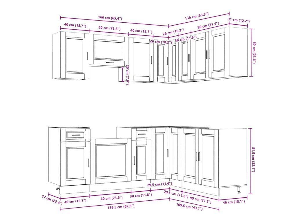 11dílná sada kuchyňských skříněk "Porto" dub sonoma kompozit 3314964