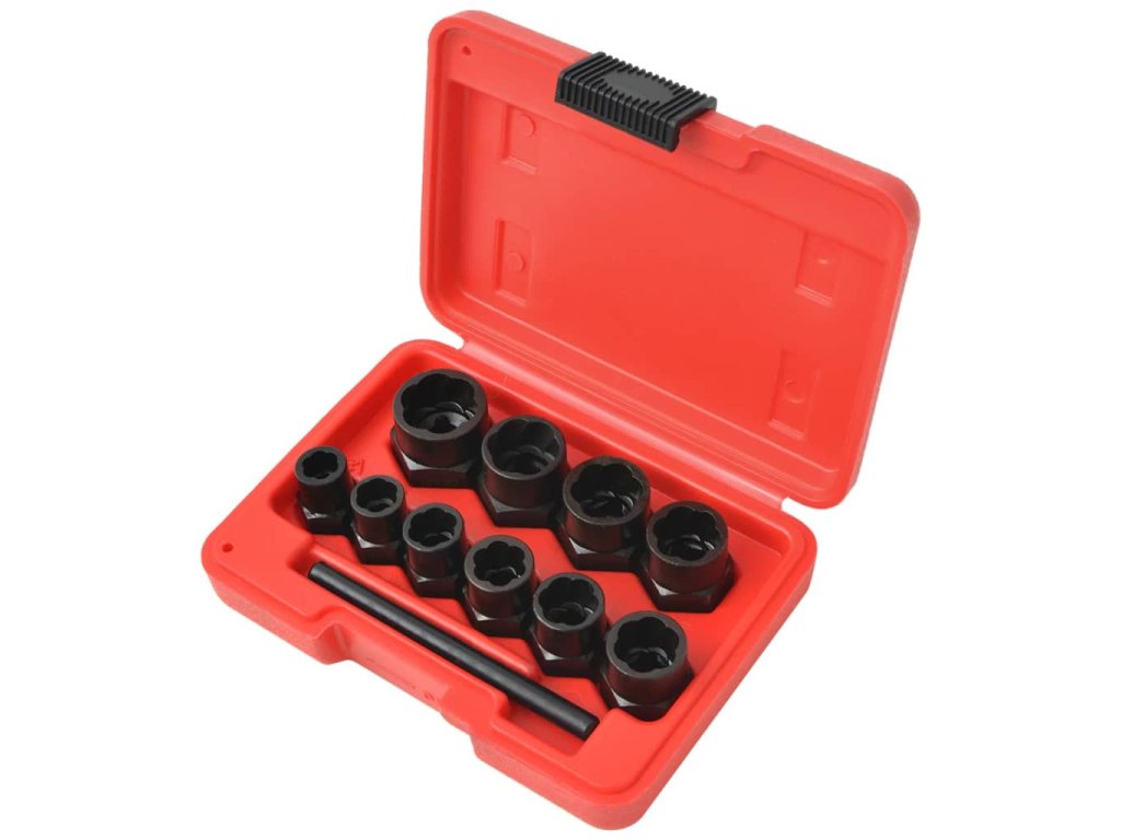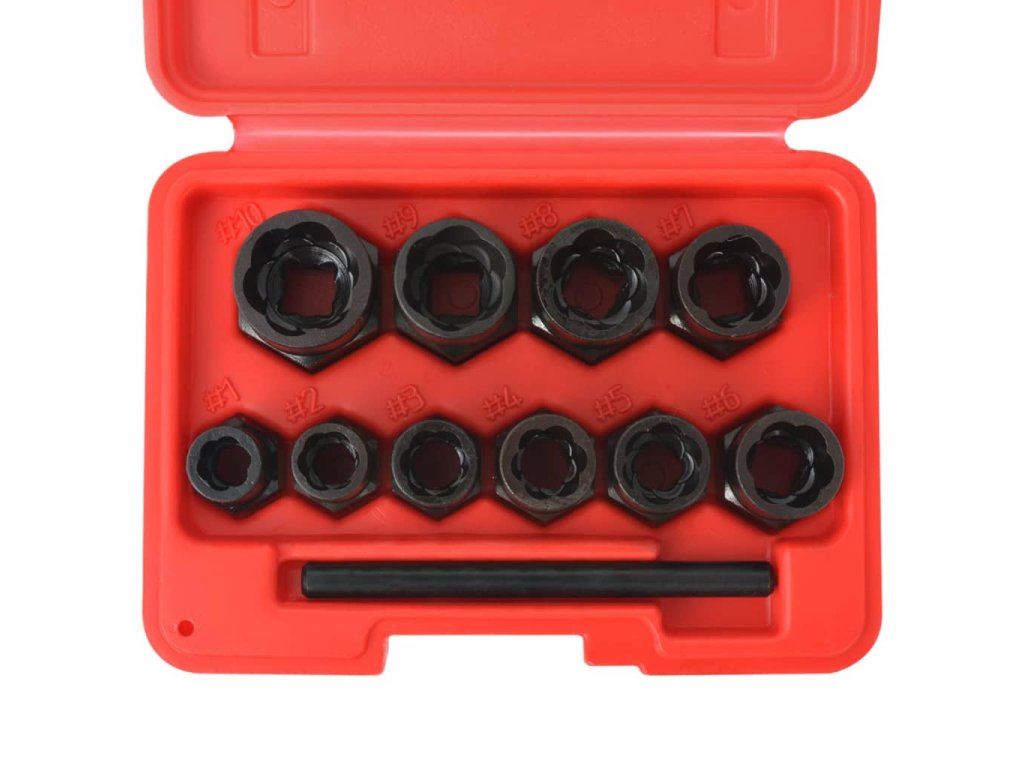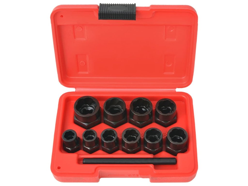 Tato 11dílná sada vytahováků šroubů je ideální pro uvolnění poškozených šroubů a matic. Tato profesionální sada nářadí je ideální pro komerční nebo příležitostné použití. Byla speciálně navržena tak, aby odstranila poškozené nebo zkorodované matice, aniž by poškodila závit šroubu.