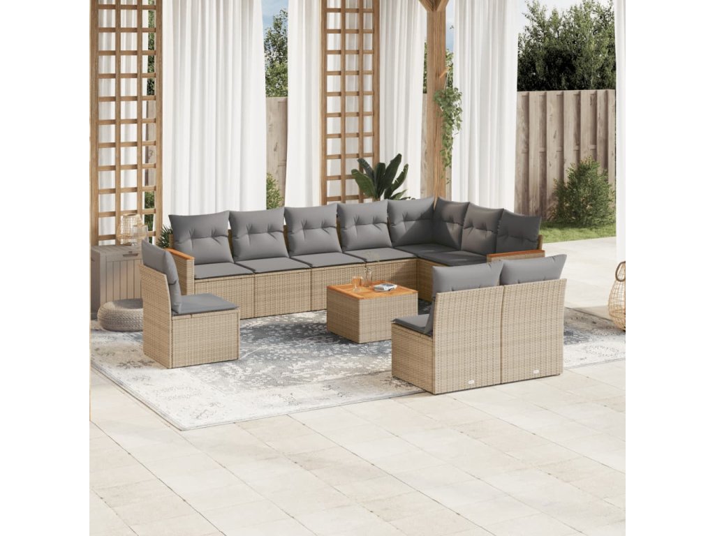 11dílná zahradní sedací souprava a podušky mix béžové polyratan 3226080