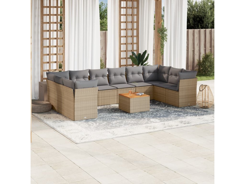 11dílná zahradní sedací souprava a podušky mix béžové polyratan 3256164