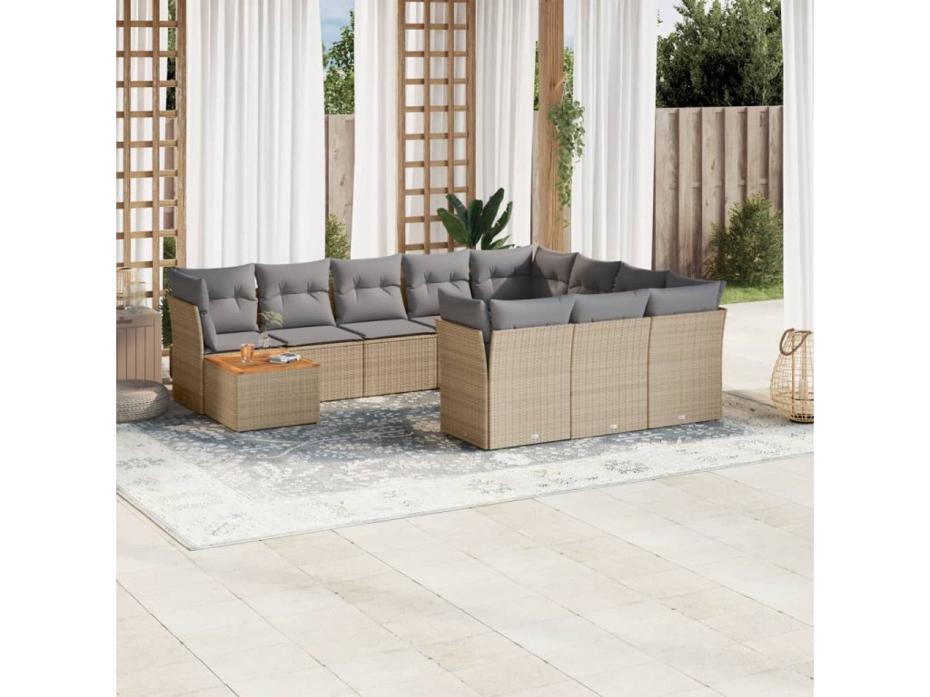 11dílná zahradní sedací souprava a podušky mix béžové polyratan 3256178