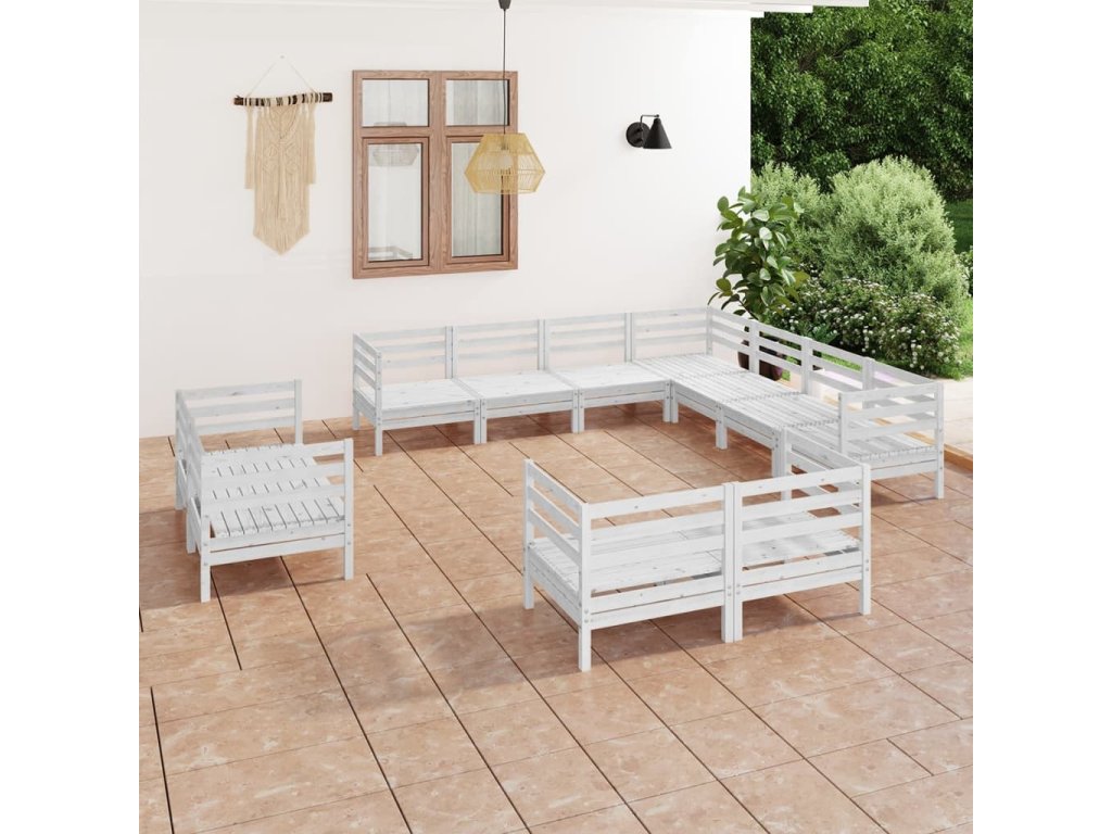 11dílná zahradní sedací souprava masivní borovice bílá 3083215