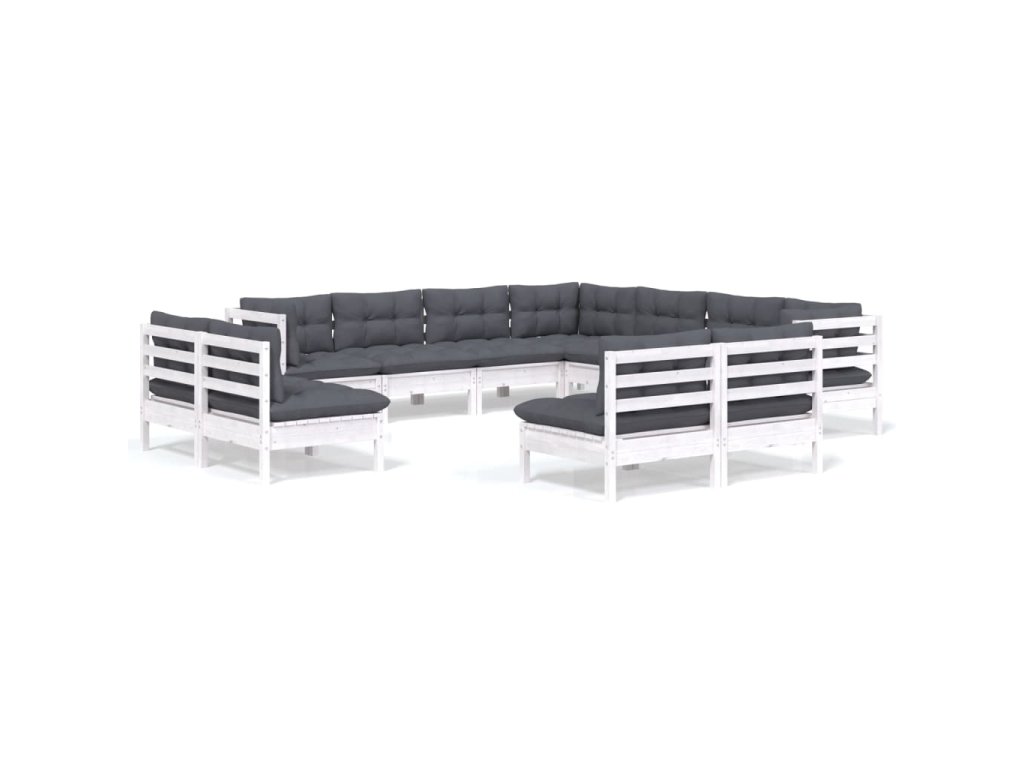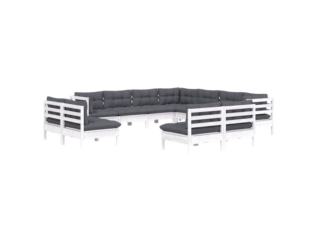 11dílná zahradní sedací souprava podušky bílá masivní borovice 3096864