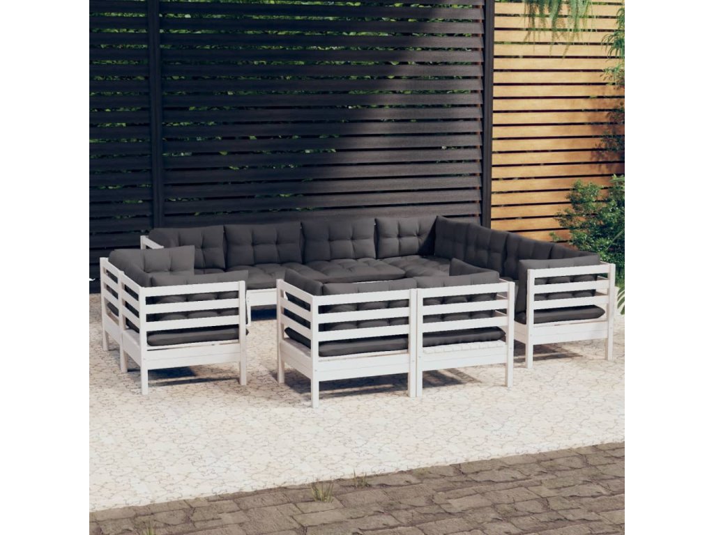 11dílná zahradní sedací souprava podušky bílá masivní borovice 3096936