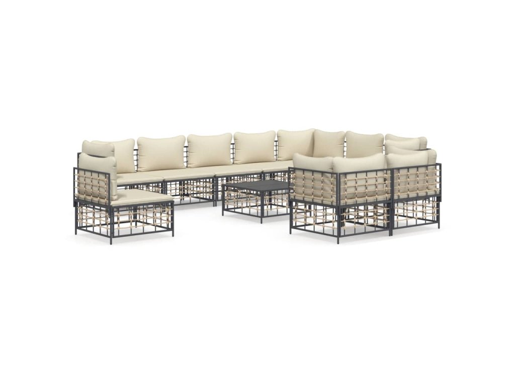 11dílná zahradní sedací souprava s poduškami antracit polyratan 3186806