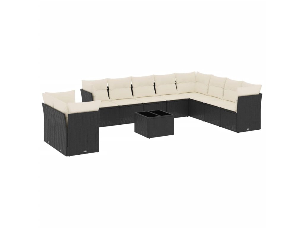 11dílná zahradní sedací souprava s poduškami černá polyratan 3217866