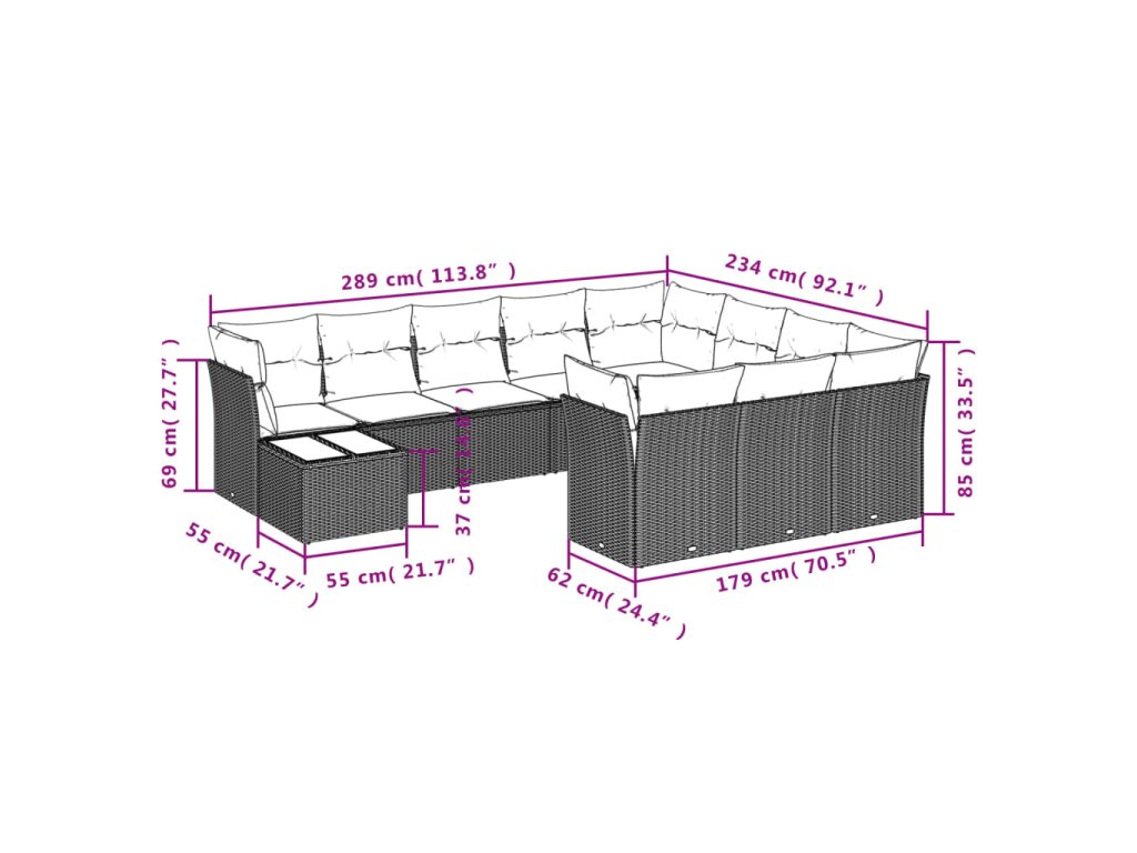 11dílná zahradní sedací souprava s poduškami černá polyratan 3218255