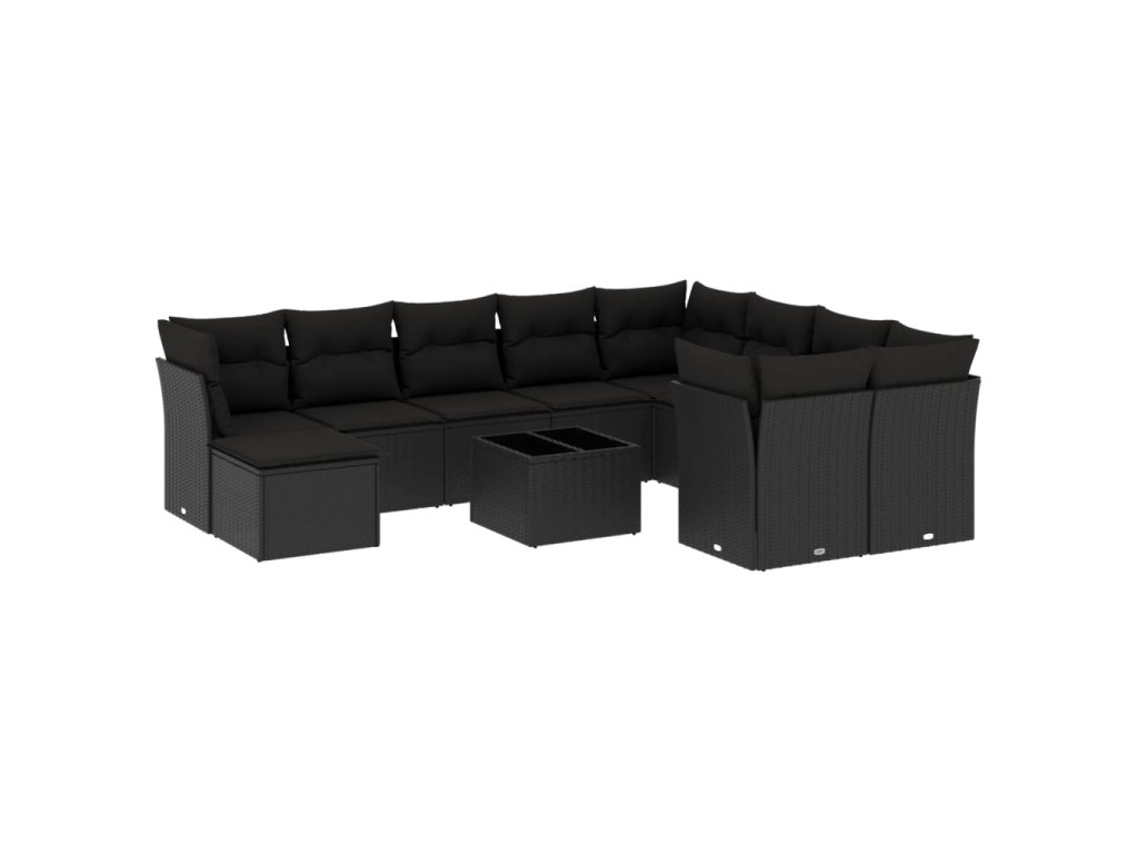 11dílná zahradní sedací souprava s poduškami černá polyratan 3218595