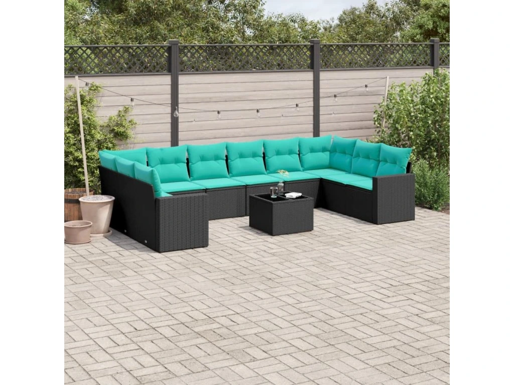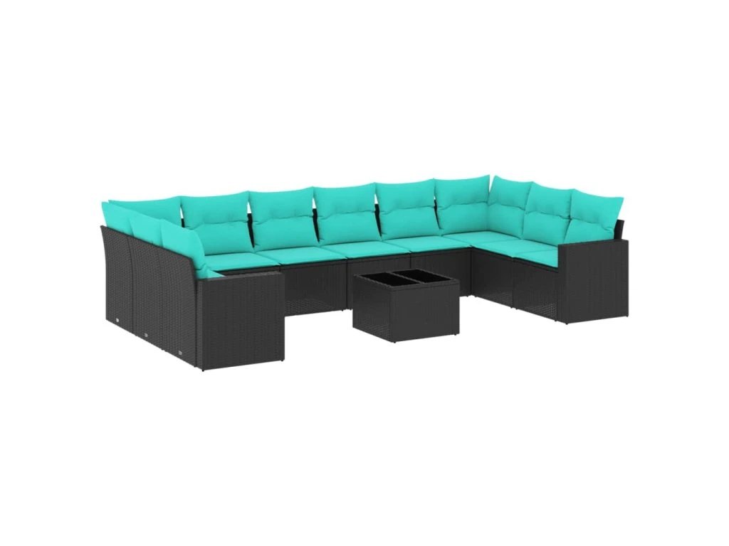 11dílná zahradní sedací souprava s poduškami černá polyratan 3219467