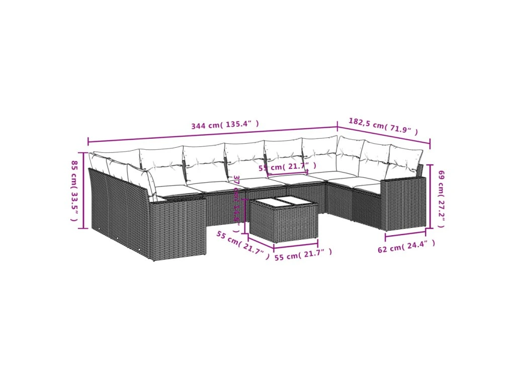 Tato zahradní sedací souprava je dokonalým doplňkem vaší zahrady, terasy nebo dvorku a poskytne vám pohodlné a příjemné místo, kde si můžete povídat s rodinou a přáteli nebo jen tak odpočívat a užívat si pobyt venku.