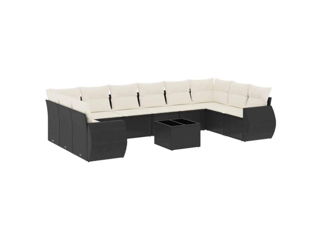 11dílná zahradní sedací souprava s poduškami černá polyratan 3221875