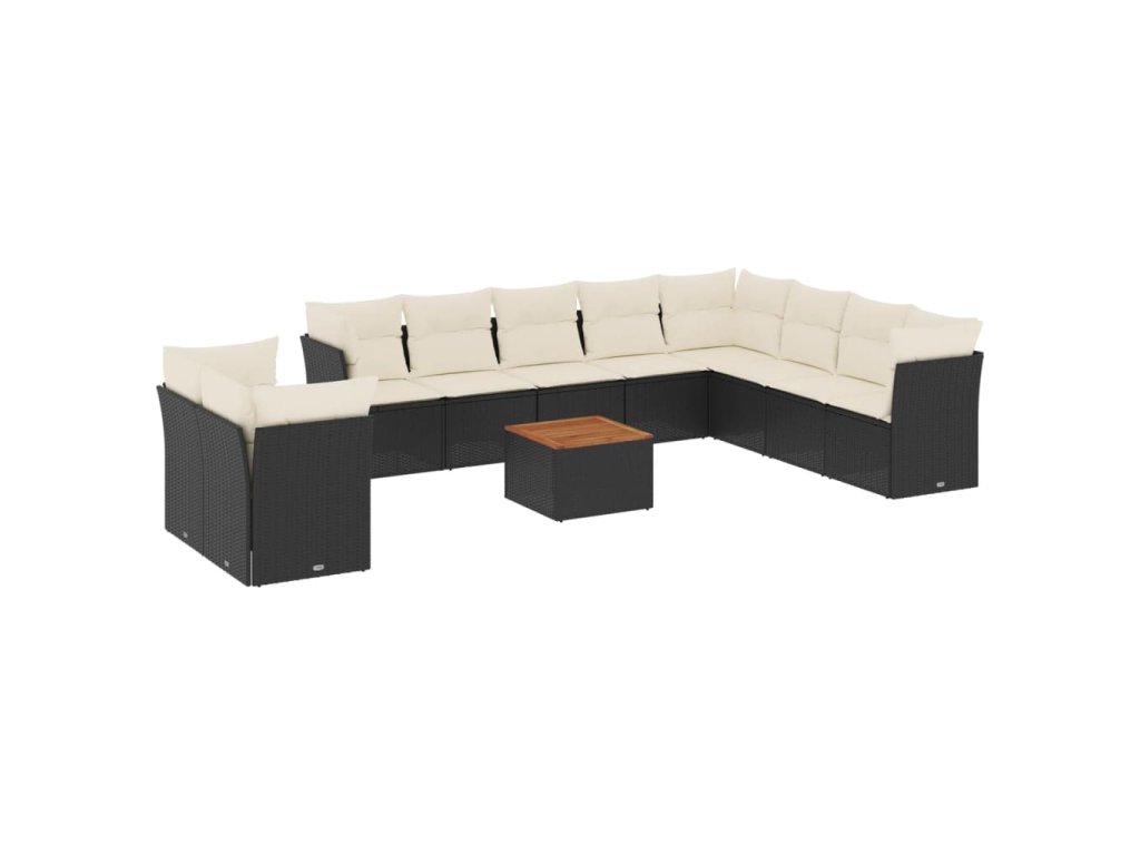 11dílná zahradní sedací souprava s poduškami černá polyratan 3223718