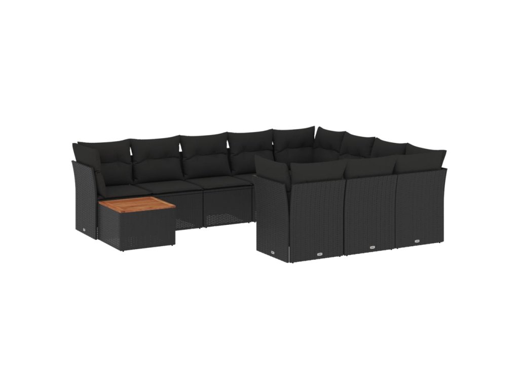 11dílná zahradní sedací souprava s poduškami černá polyratan 3223843