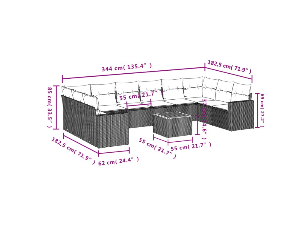 11dílná zahradní sedací souprava s poduškami černá polyratan 3224292