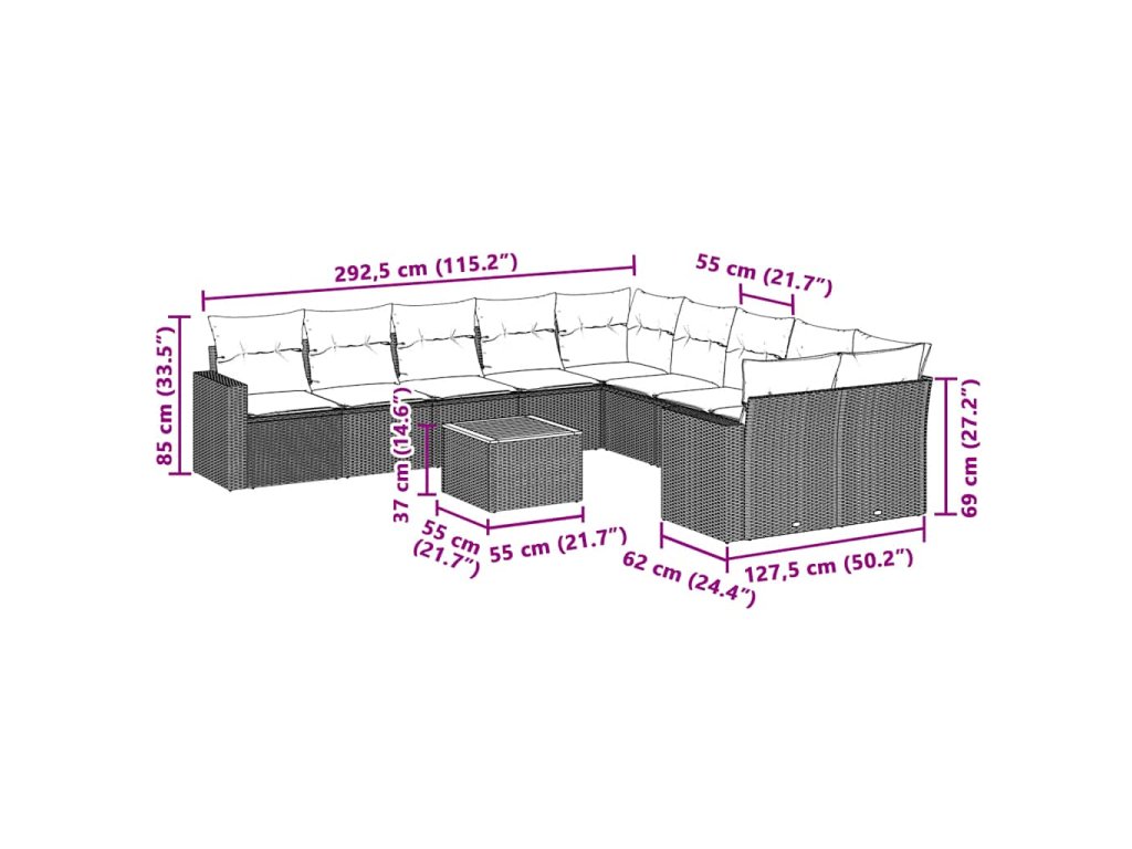Tato zahradní sedací souprava je dokonalým doplňkem vaší zahrady, terasy nebo dvorku a poskytne vám pohodlné a příjemné místo, kde si můžete povídat s rodinou a přáteli nebo jen tak odpočívat a užívat si pobyt venku.