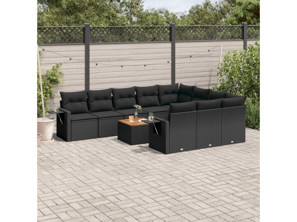 11dílná zahradní sedací souprava s poduškami černá polyratan 3224739