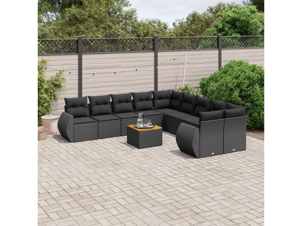 11dílná zahradní sedací souprava s poduškami černá polyratan 3225194