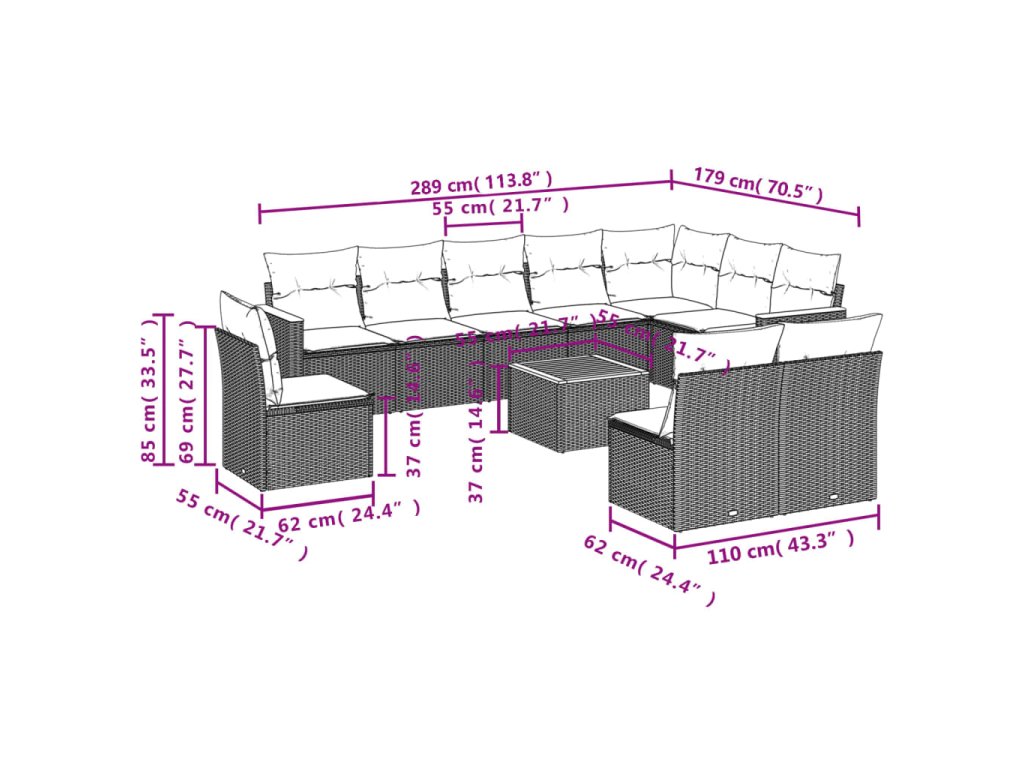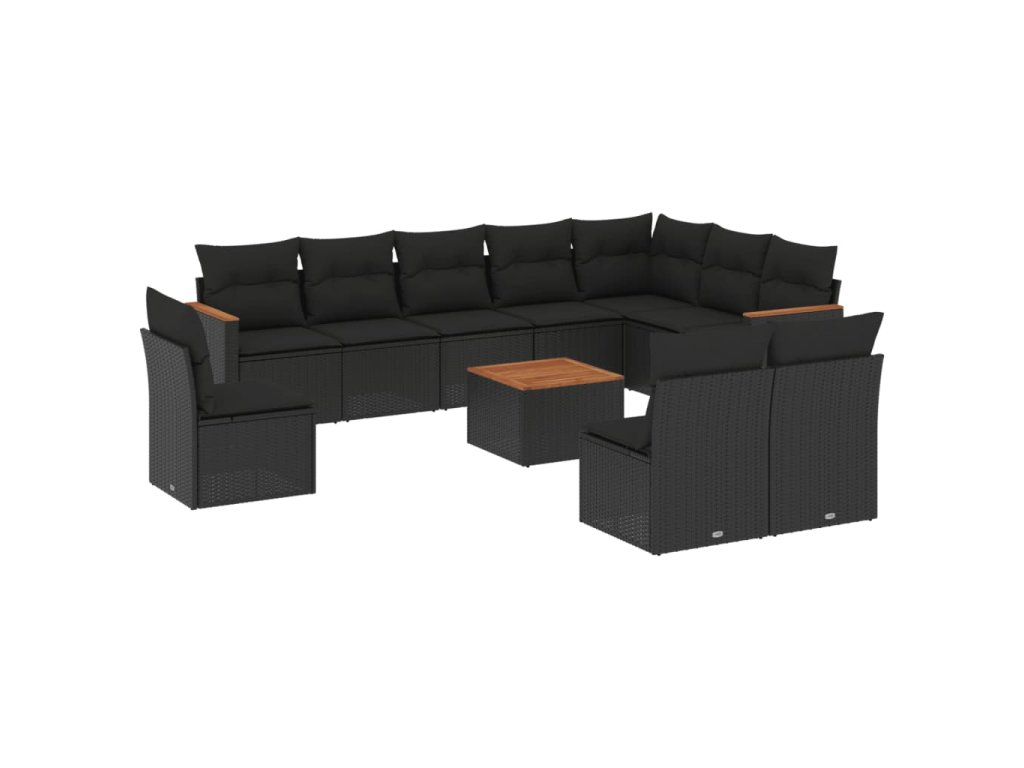 11dílná zahradní sedací souprava s poduškami černá polyratan 3226076