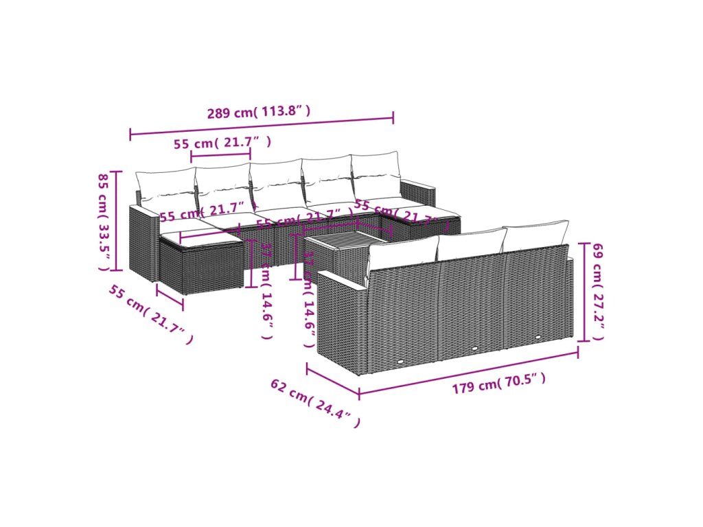 11dílná zahradní sedací souprava s poduškami černá polyratan 3226419