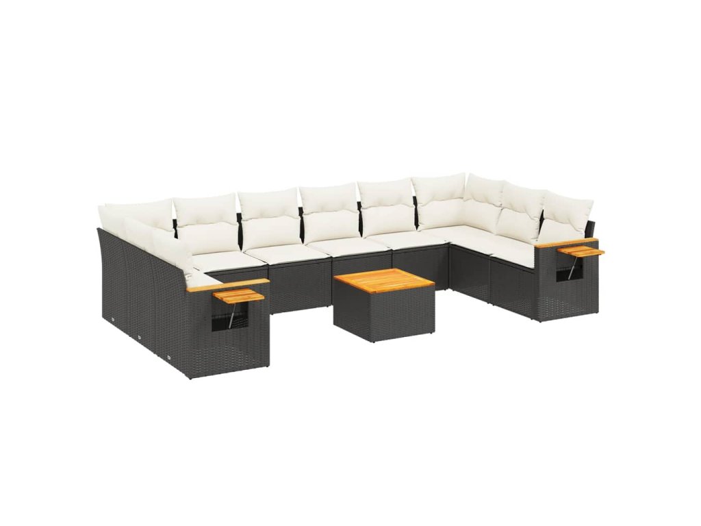 11dílná zahradní sedací souprava s poduškami černá polyratan 3227169
