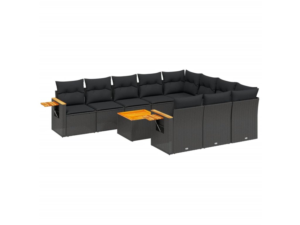 11dílná zahradní sedací souprava s poduškami černá polyratan 3227182