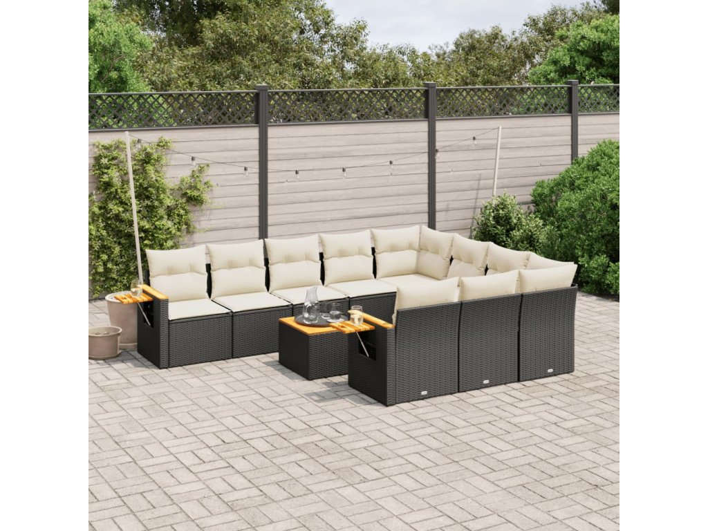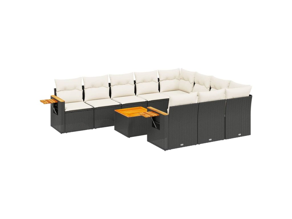 11dílná zahradní sedací souprava s poduškami černá polyratan 3227183