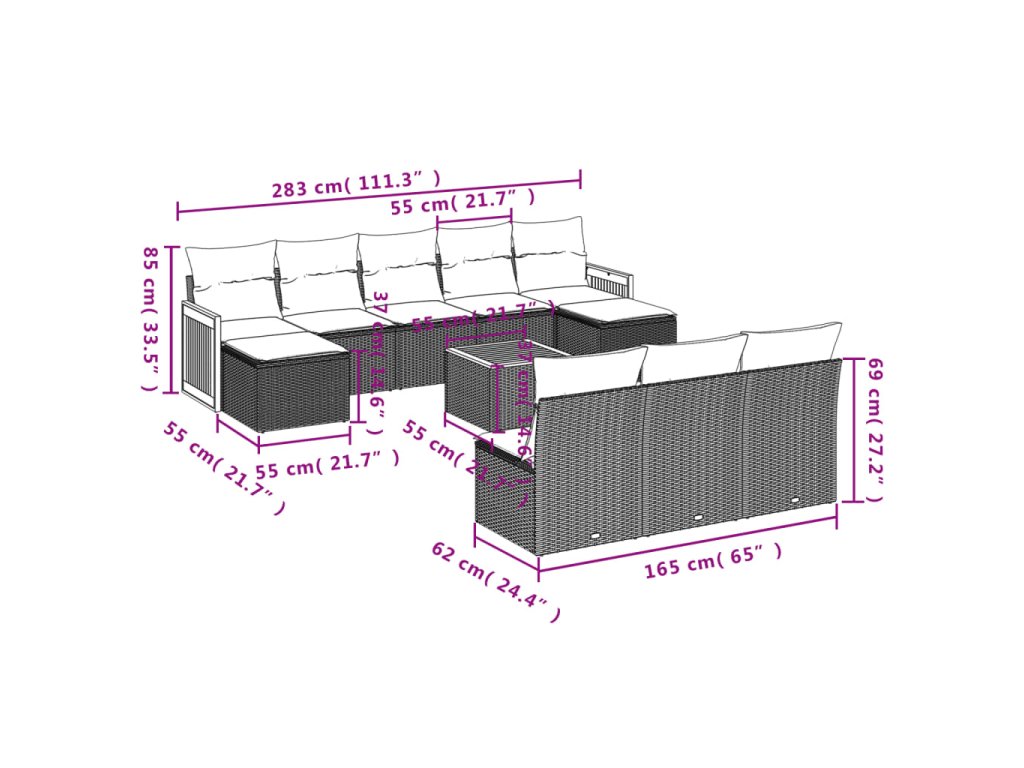 11dílná zahradní sedací souprava s poduškami černá polyratan 3228072