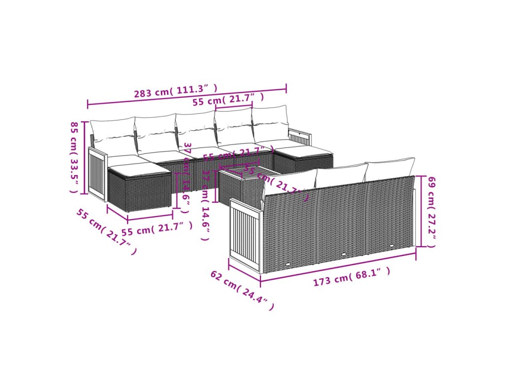 Tato zahradní sedací souprava je dokonalým doplňkem vaší zahrady, terasy nebo dvorku a poskytne vám pohodlné a příjemné místo, kde si můžete povídat s rodinou a přáteli nebo jen tak odpočívat a užívat si pobyt venku.