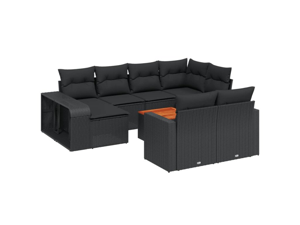 11dílná zahradní sedací souprava s poduškami černá polyratan 3228915