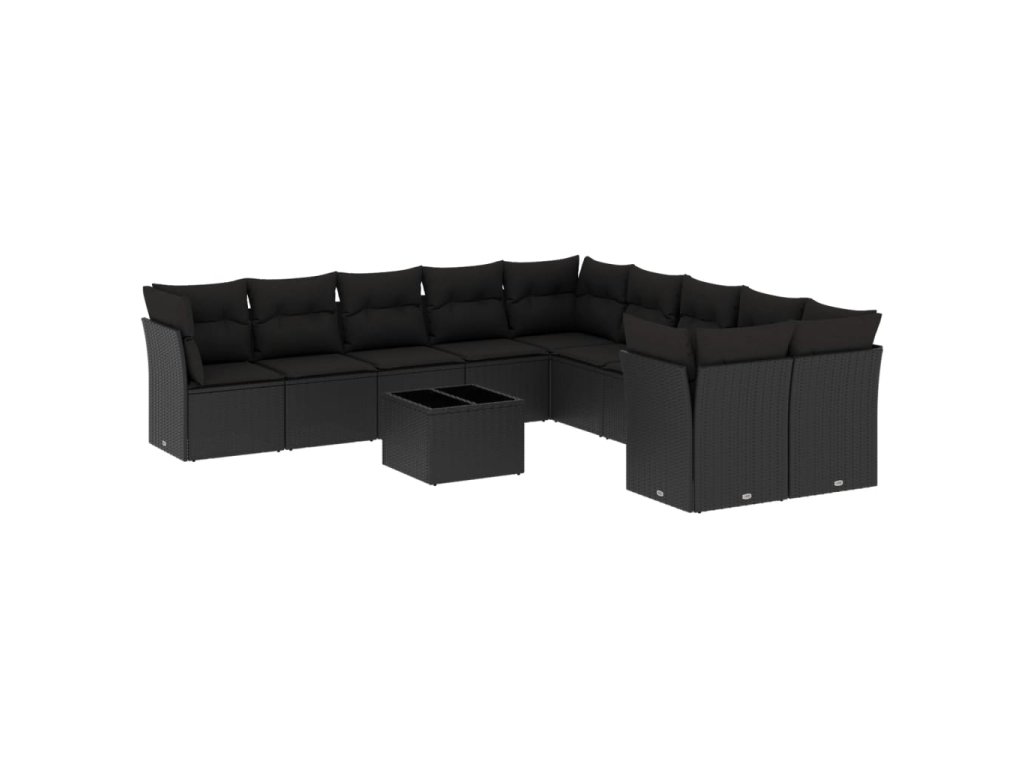 11dílná zahradní sedací souprava s poduškami černá polyratan 3250084